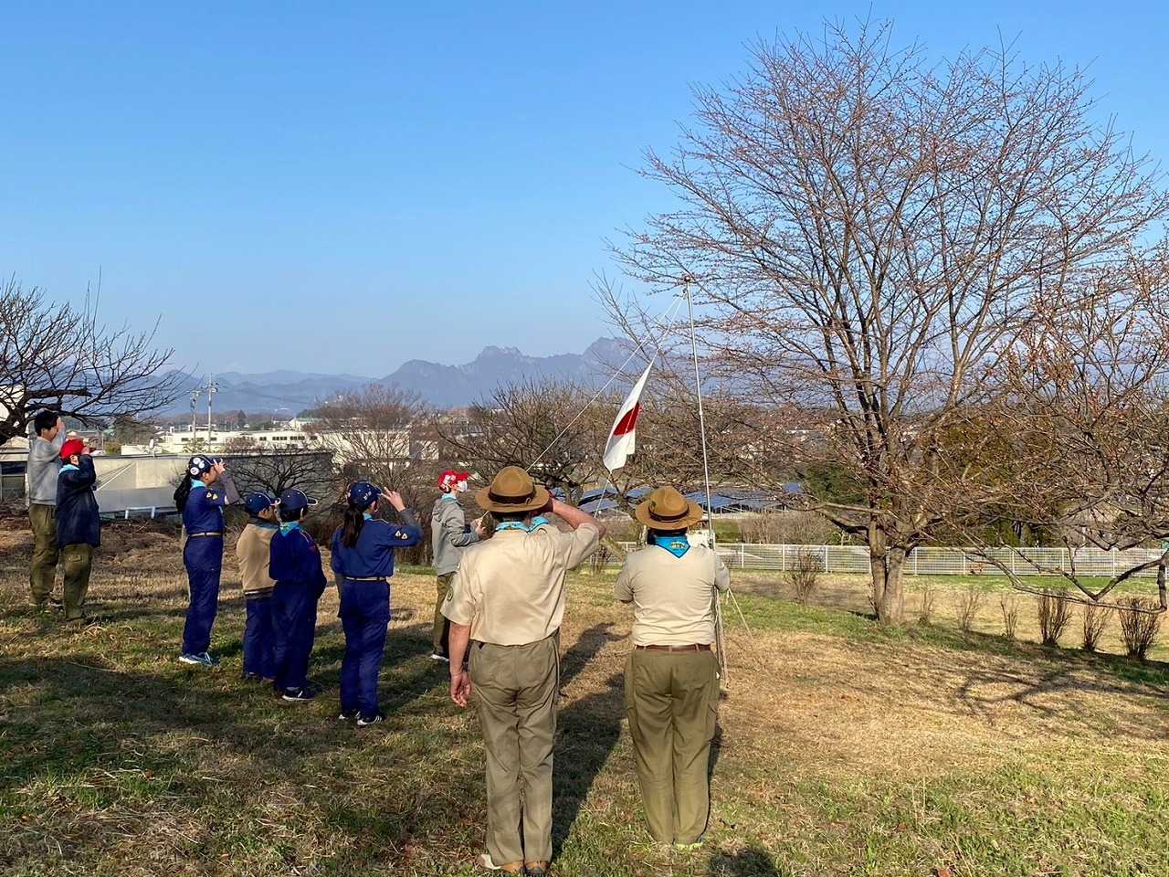 モーニングゲームやスカウツオウンなど、ボーイ式の朝礼を経験しました。