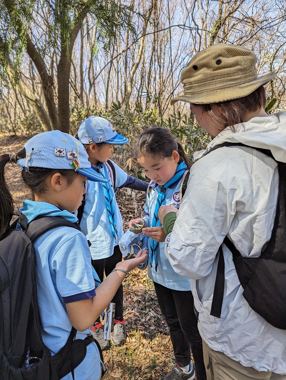 ビーバー隊は、崇台山へ春探しハイキングに行きました。