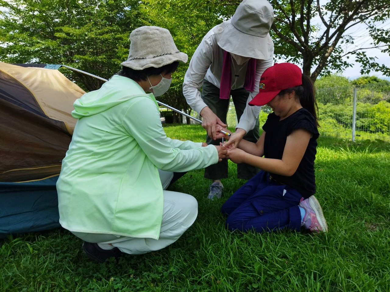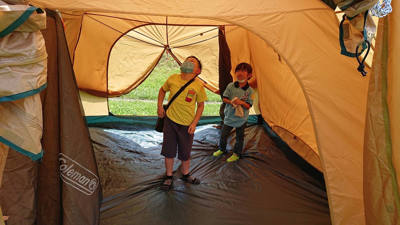 練習の成果を発揮し、30分で2つのテントが立てられました。