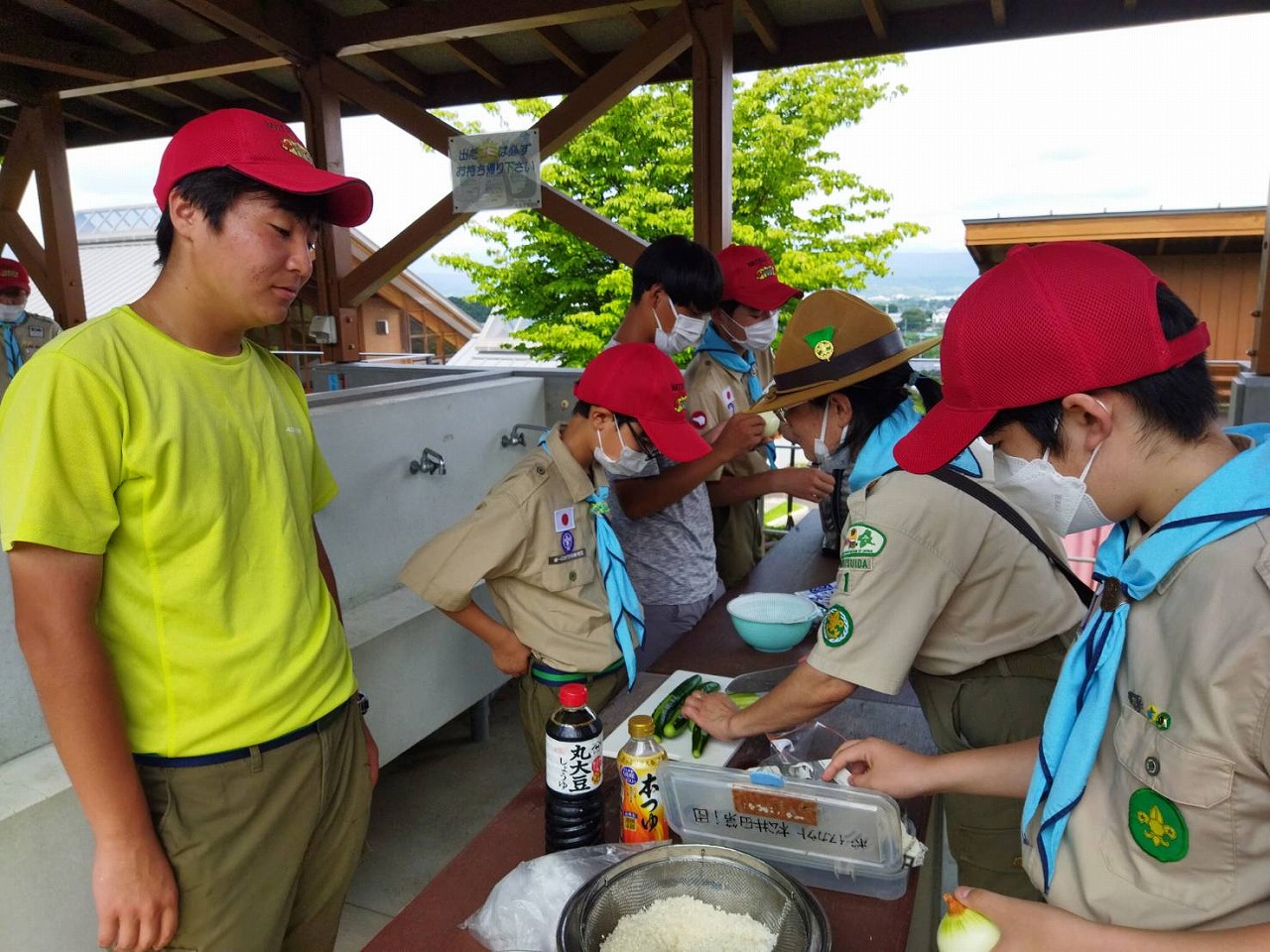 食事は日本スカウトジャンボリーでも使うガスコンロを練習するチームと、