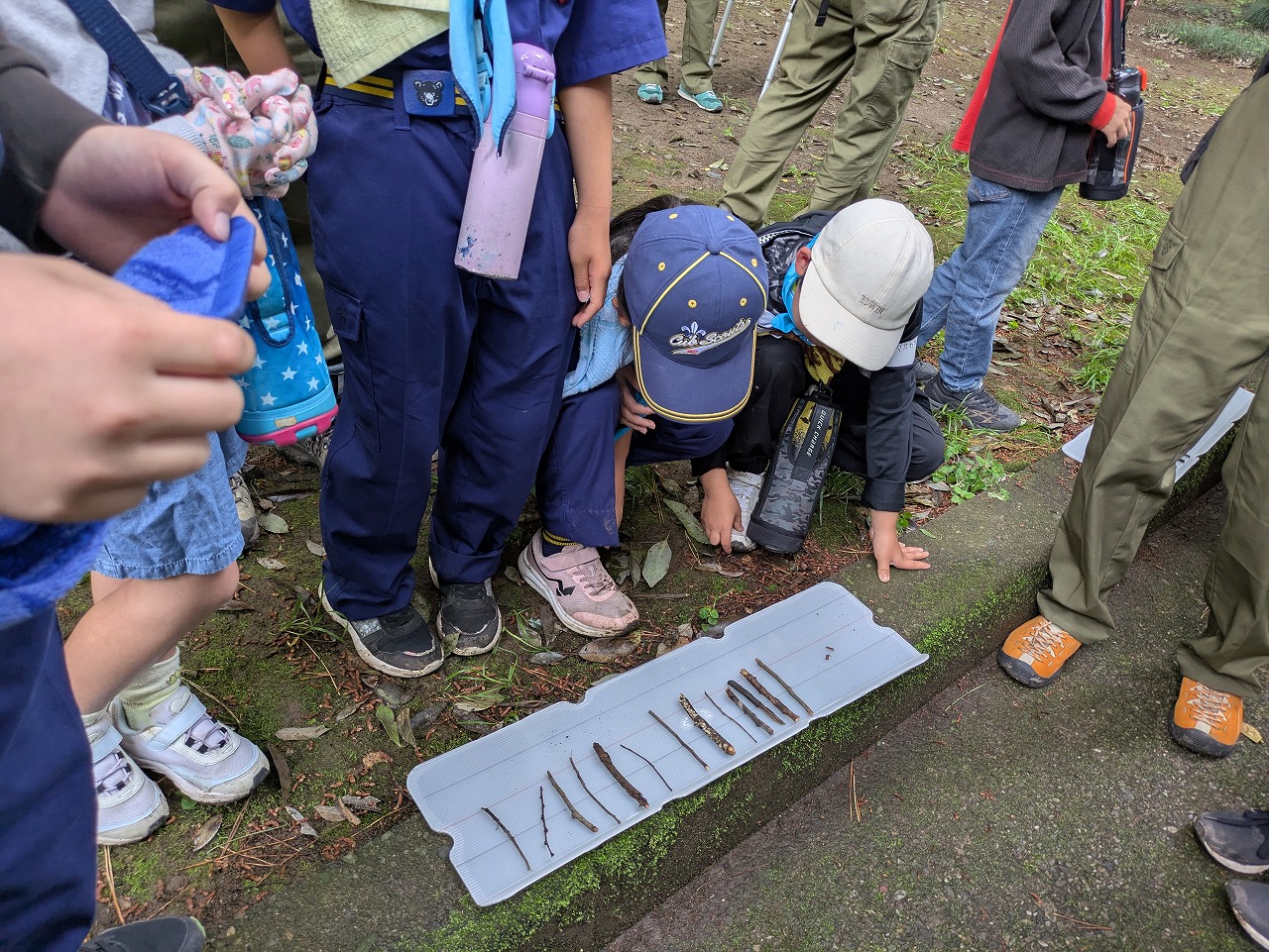 会場内に落ちている枝から運営のリーダーが示した見本と同じ長さのものを探しました。