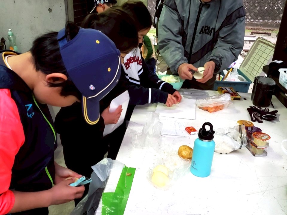 隊長からは、夕食はカレー、朝食はご飯とみそ汁をつくること、と指示してあります。