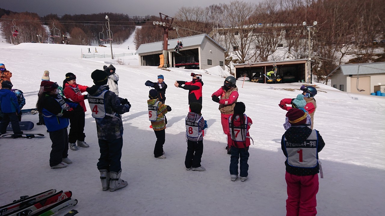 スキー・スノーボードに分かれ、初めての人・不慣れな人はスクールに入りました。