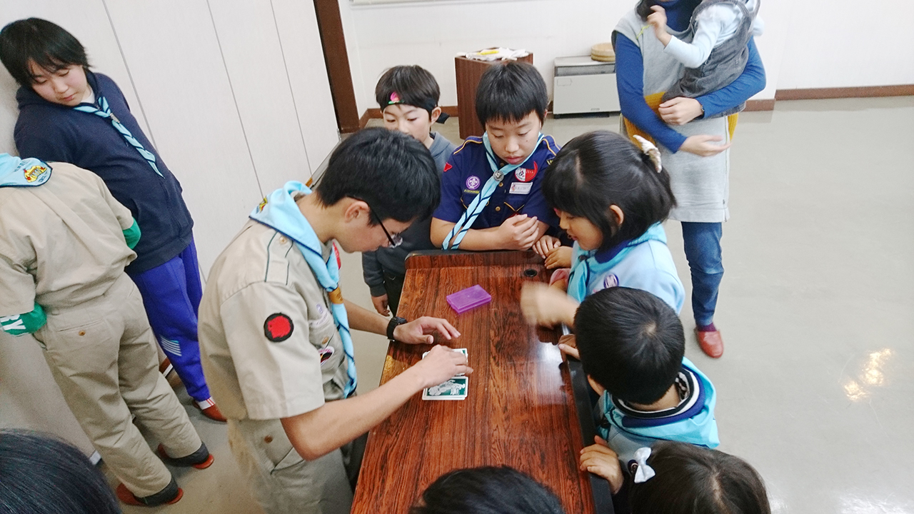 ボーイ隊は個人個人でトランプマジックを披露しました。