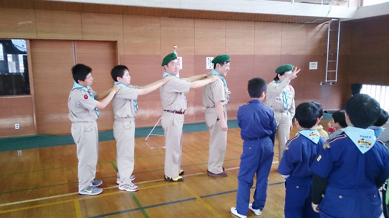 開会のセレモニーでは、ボーイ隊のスカウトの指揮で「さんぽ」(となりのトトロ)を元気よく歌いました。