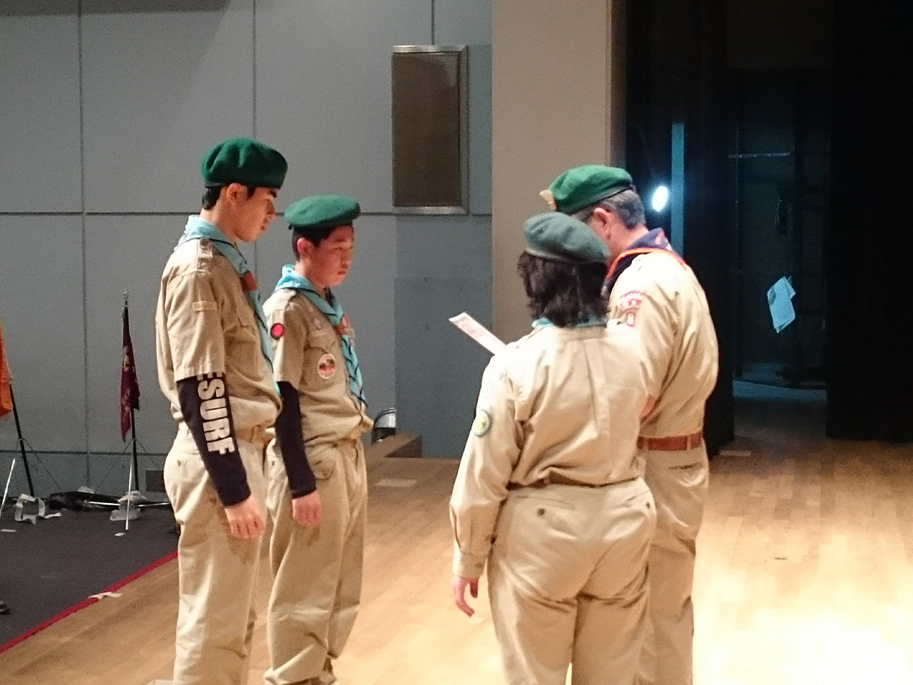 BPに関するビデオを鑑賞し来賓のあいさつなどのあと、前回BP祭~今回までにボーイ隊最高の栄誉である「菊章」とベンチャー隊の「隼章」を取得したスカウトが紹介されました。