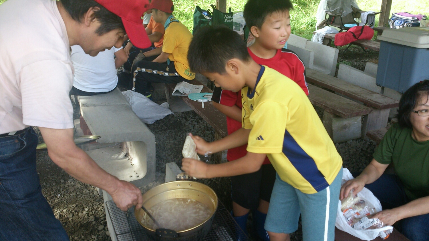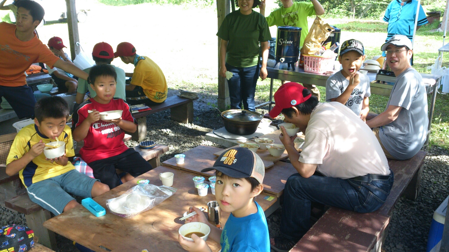 朝ご飯はカブ隊は前日から材料を仕込んでおいたカレーうどん、ボーイ隊はスクランブルエッグを作りました。