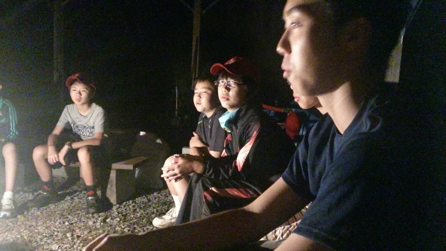 夜はキャンプファイヤーの予定でしたが、あいにくの雨と強風のためキャンドルナイトに変更しました。