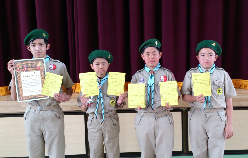 大会参加章のワッペンは当団の2人のスカウトが描いた原案が採用され、開会式で表彰されました。