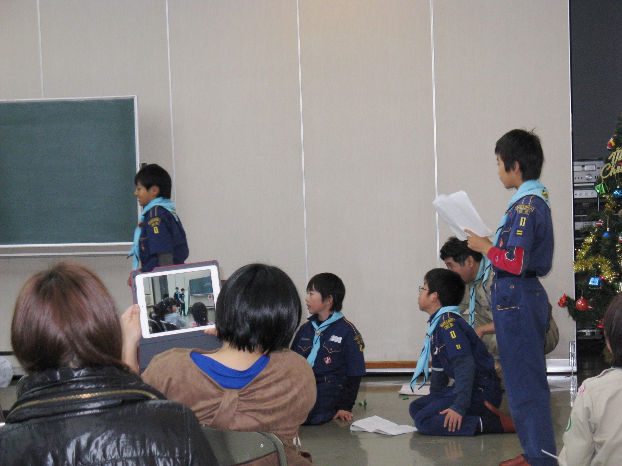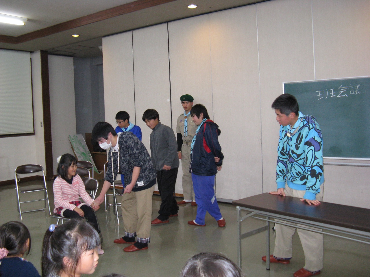 つづいてボーイ隊のコント「班会議」です。