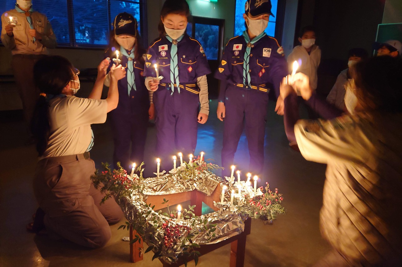 まずはキャンドルサービスで、各隊の代表スカウトが今年1年がんばってきたこと・来年の目標を話しました。