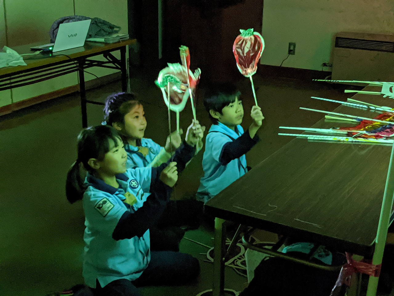 ビーバー隊とカブ隊は合同で「影絵」です。