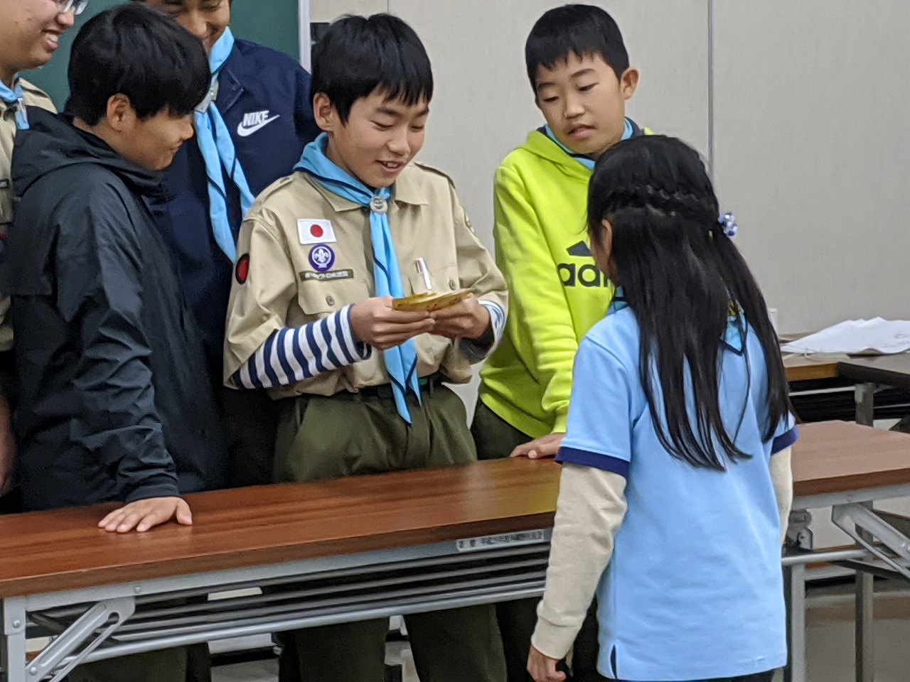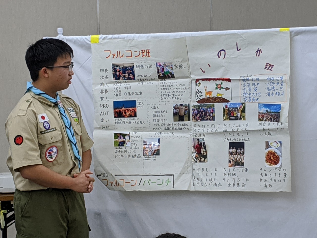 世界スカウトジャンボリーに行ったスカウトの発表も聞きました。