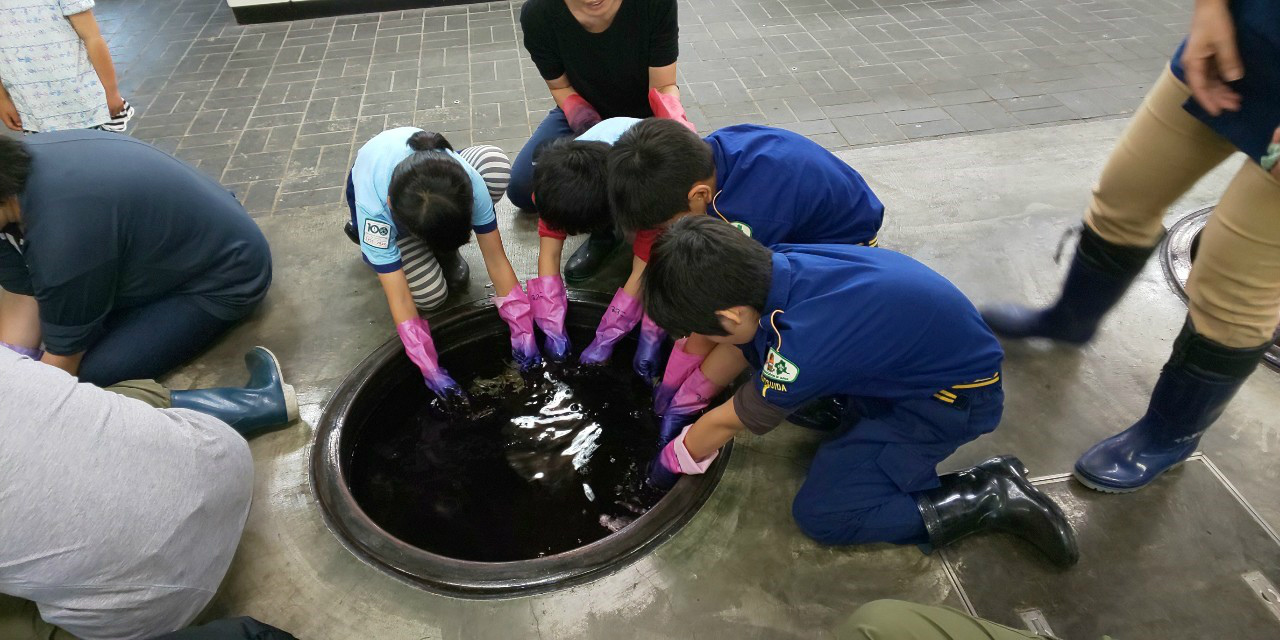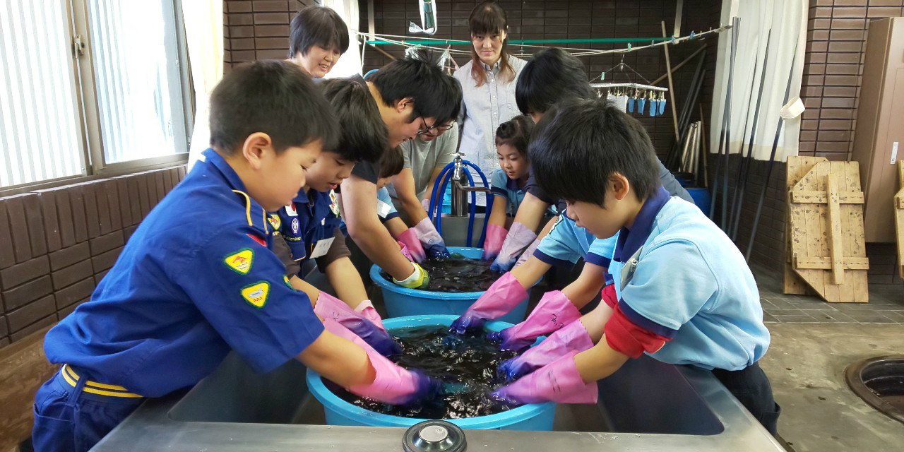 小雨が降る中、高崎市染料植物園にて藍染め体験をしました。