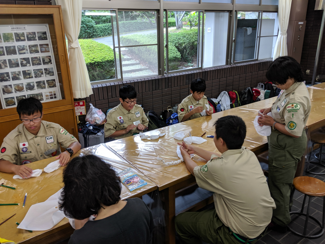 台風が過ぎ去った14日は、団キャンプで予定していたプログラムの一部を実施しました。
