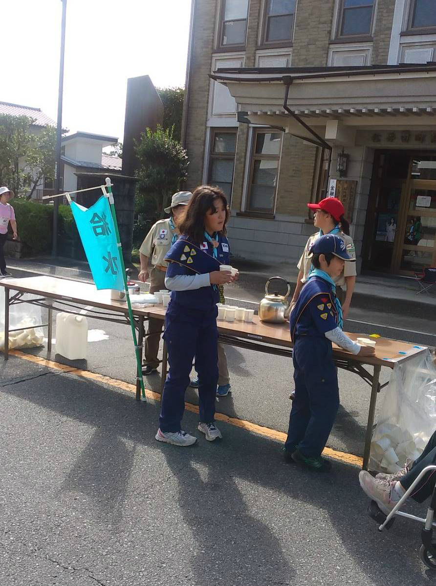 ビーバー隊はスタート・ゴール地点の給水所で奉仕しました。