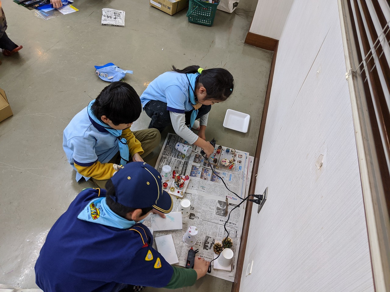 ビーバー隊・カブ隊は合同で「影絵」をやります。