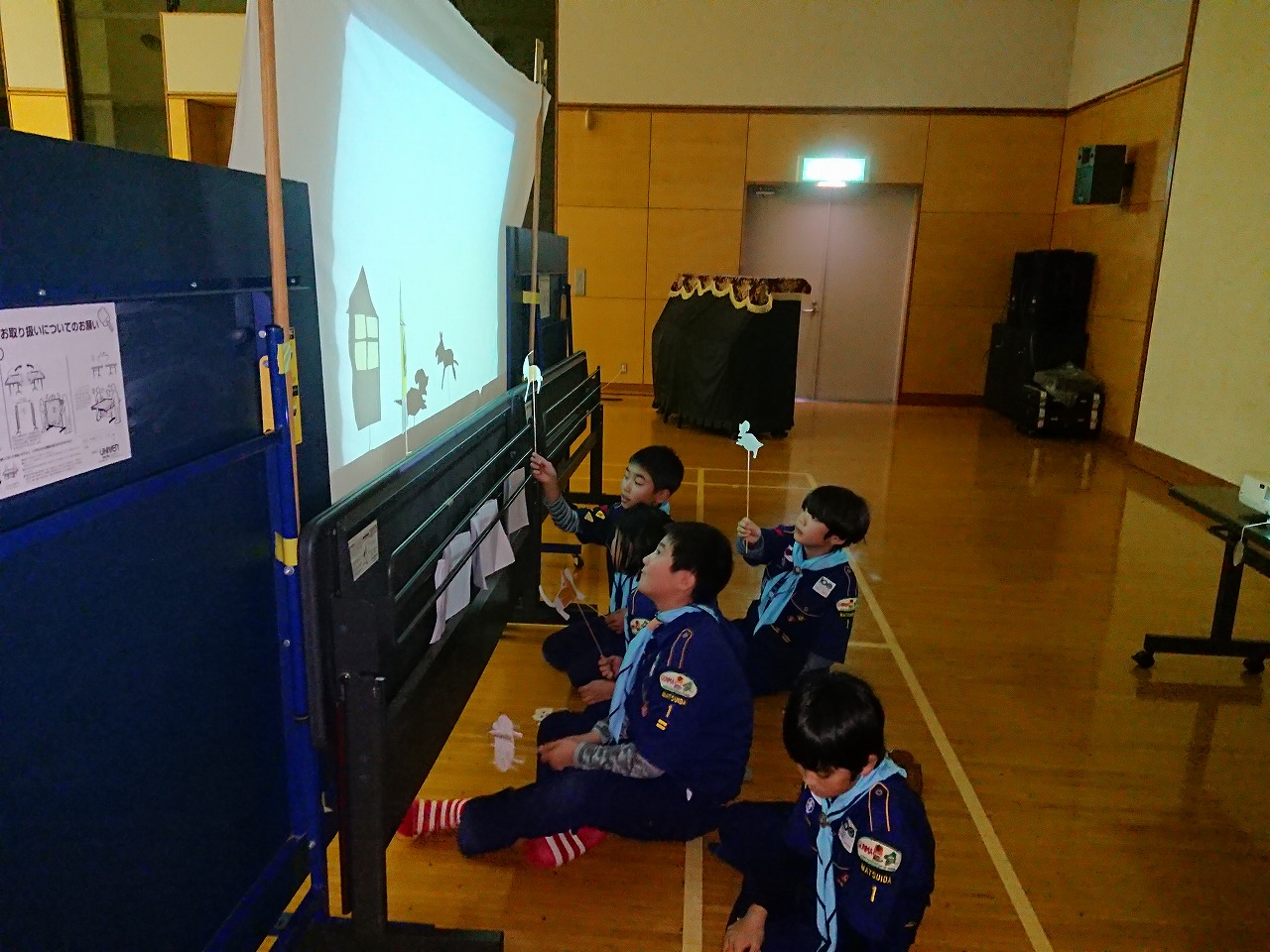カブ隊の影絵は「ブレーメンの音楽隊」です。