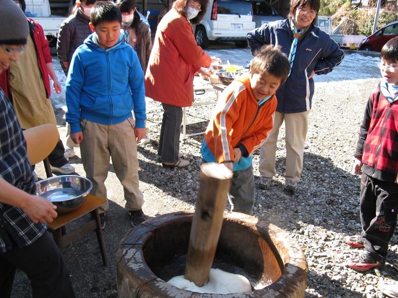 スカウトたちが立てた年間プログラムに餅つきがあります。
