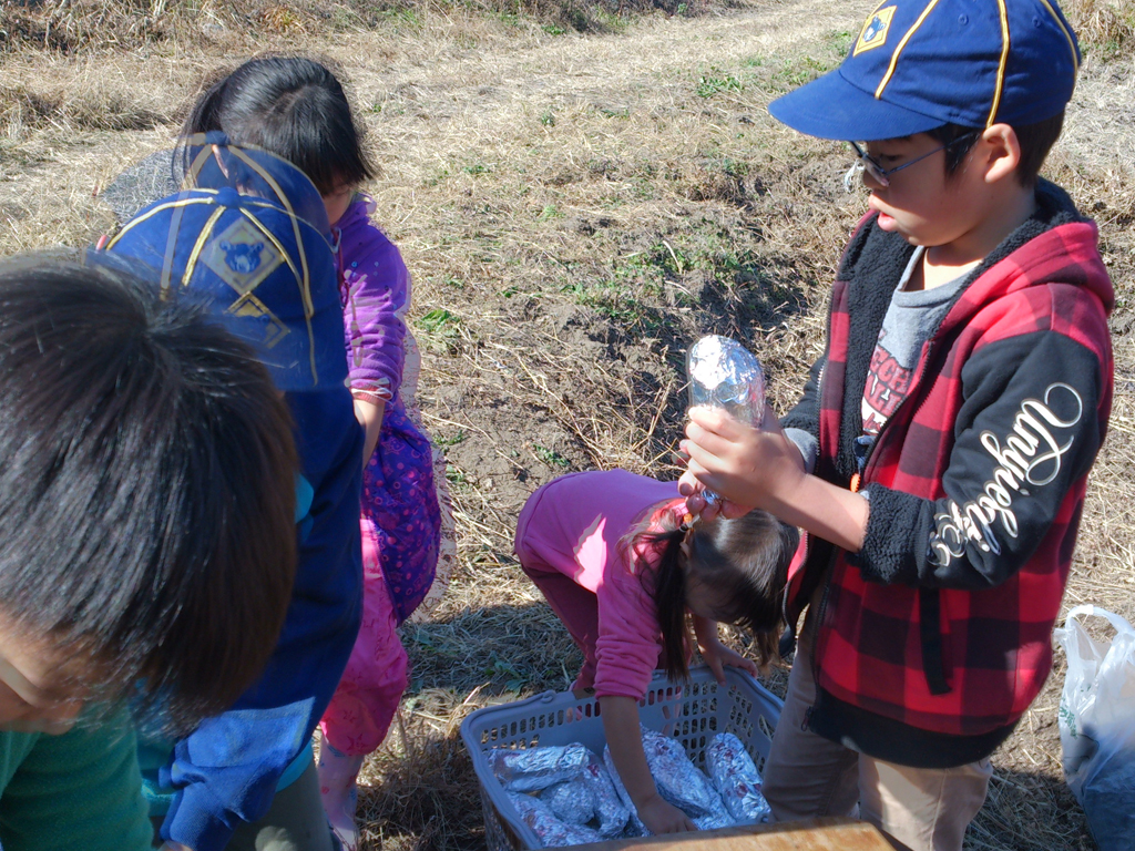 さつまいもはうまく焼き上がり、寒空の中、野外で楽しく食べました。