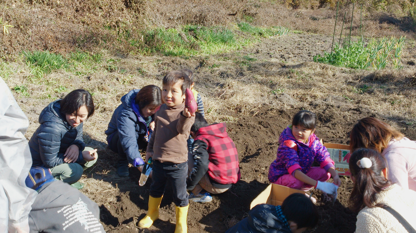 まずは春に植えたさつまいも掘り…といきたいところでしたが、あいにくイノシシの被害に遭ってしまったため、リーダーが内緒で“仕込んだ”いもを探して掘り出す宝探しになりました。