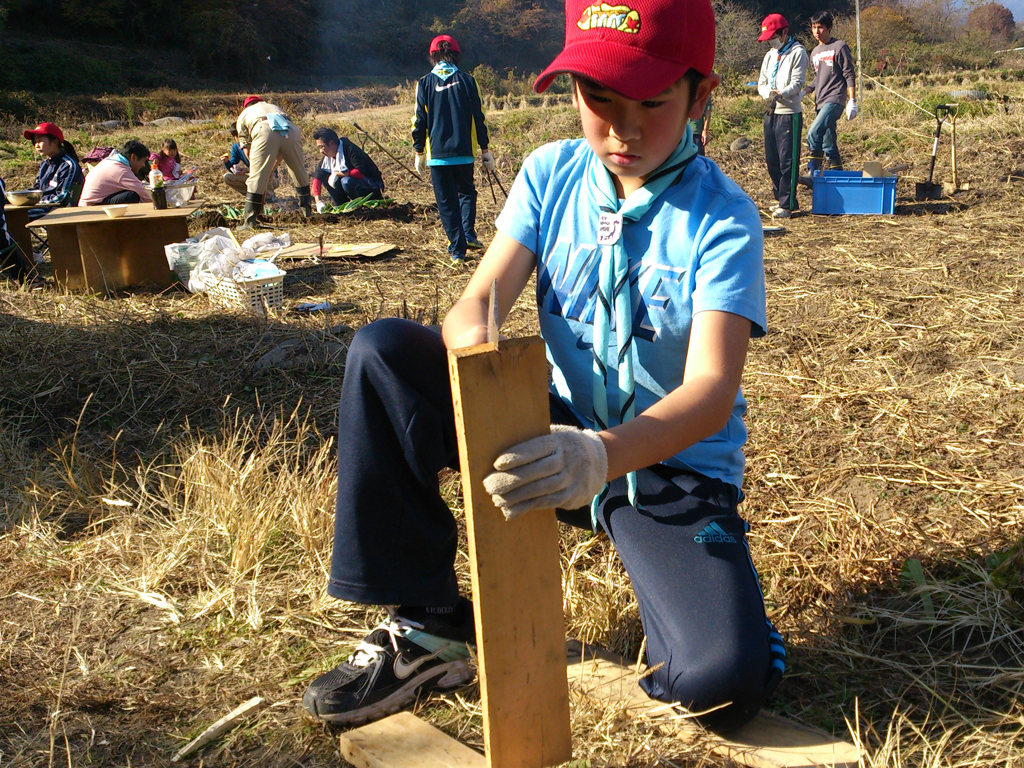 松井田町上増田にお借りしている農園で、新入団員募集のデイキャンプを行いました。