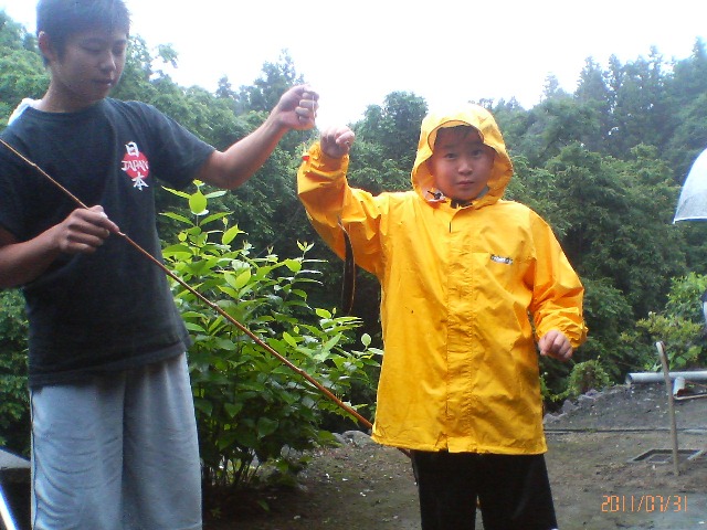 くまスカウトの一人が見事引っかけ釣りに大成功。