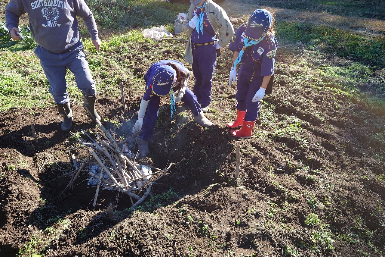 カブ隊は、焼きいもとカレーうどん用のかまど作りをしました。