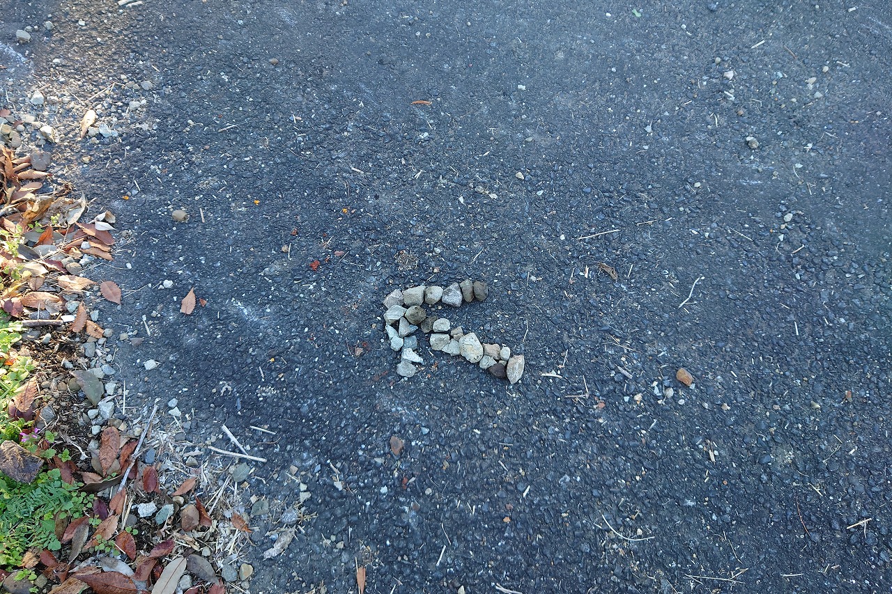 追跡ハイキングは、道に示された写真のような「サイン」を手がかりにルートを決めて歩くハイキングです。
