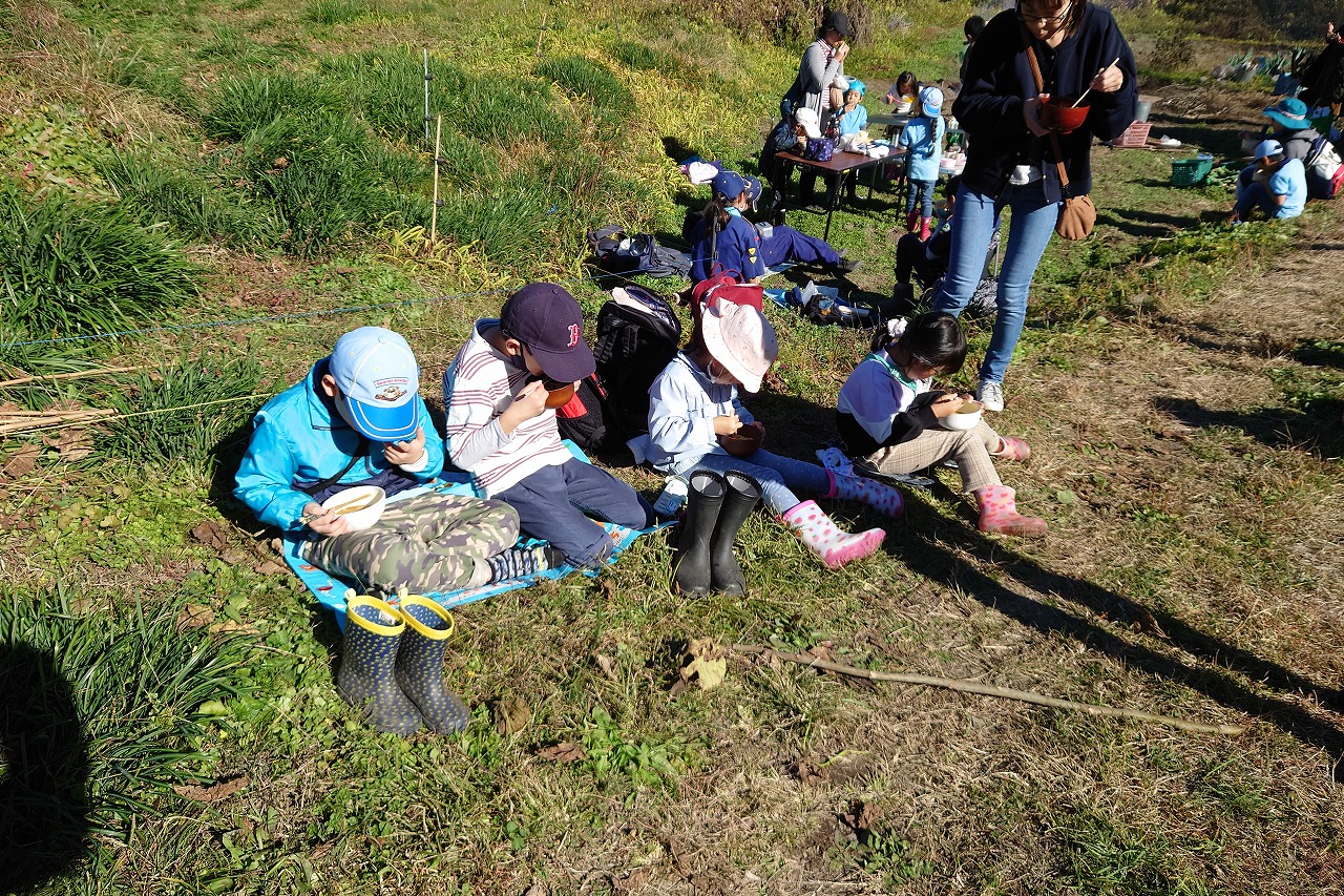 今回は、集合場所から会場の畑までは追跡ハイキングで移動しました。