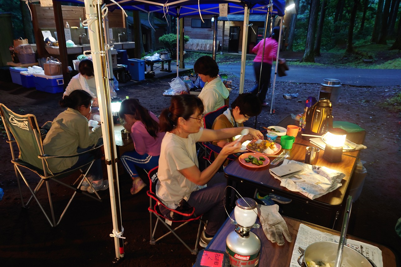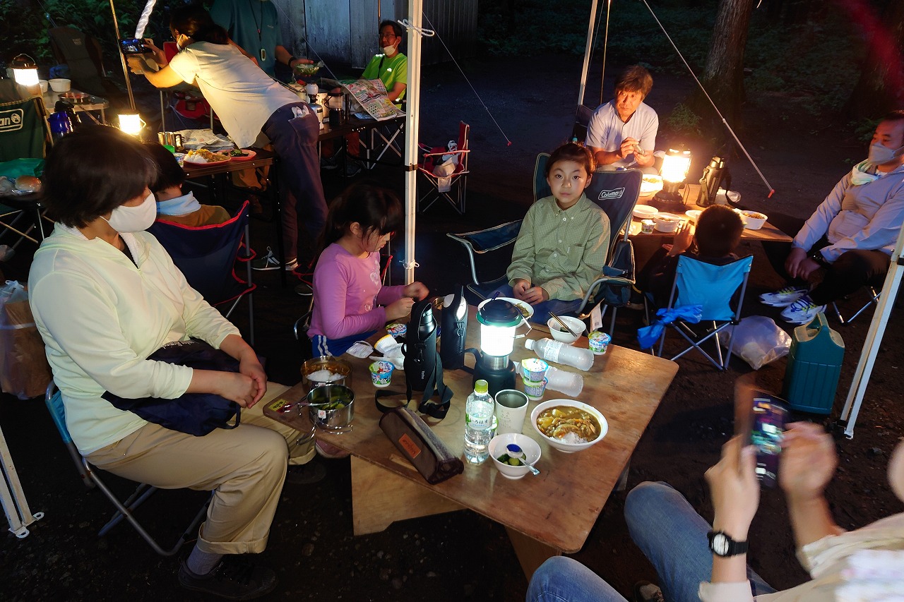 ボーイ隊が設営した食堂フライとガスランタンもいい雰囲気で食事ができました。