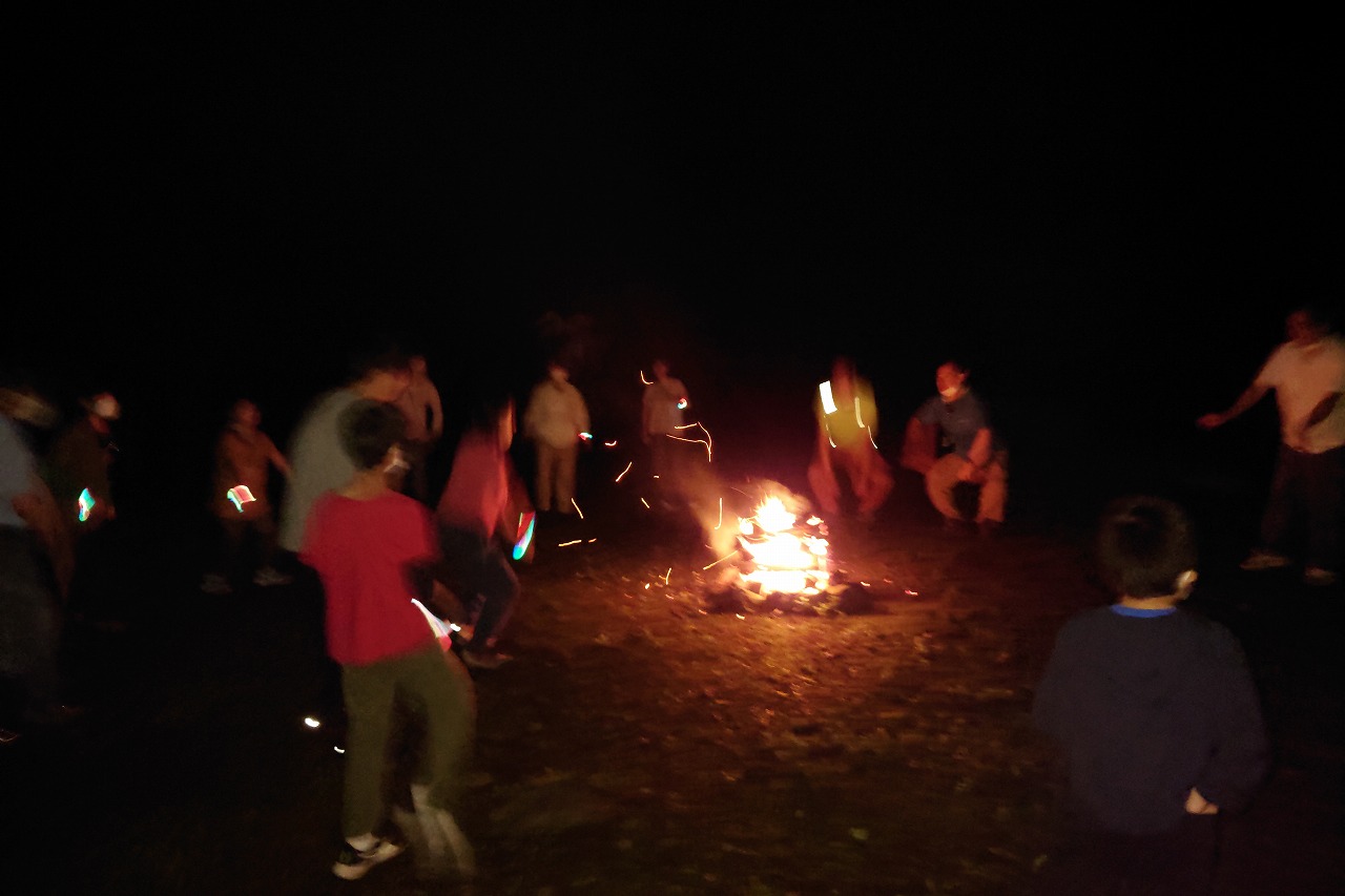 食事のあとは、キャンプファイヤーで歌って踊って楽しみました。