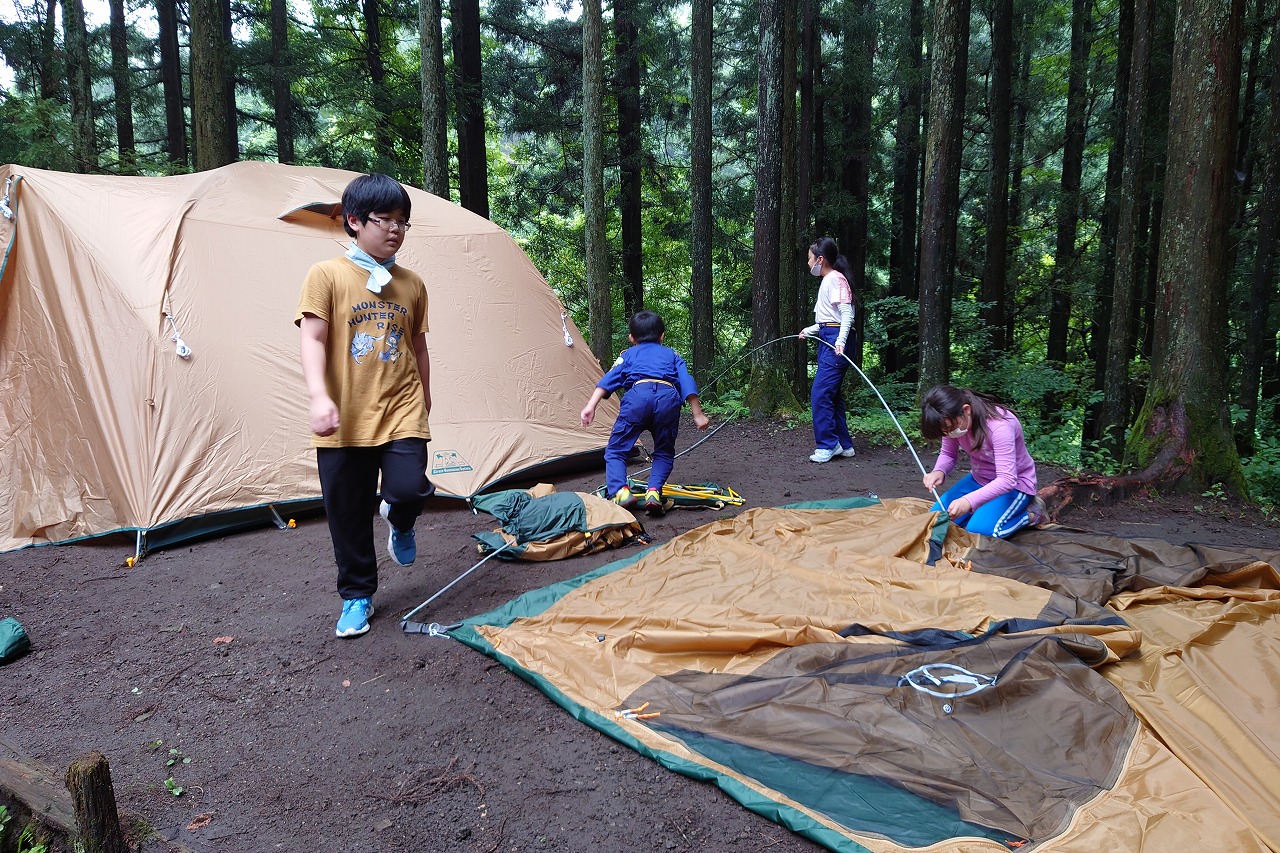 練習の成果を発揮し、30分で2つのテントが立てられました。
