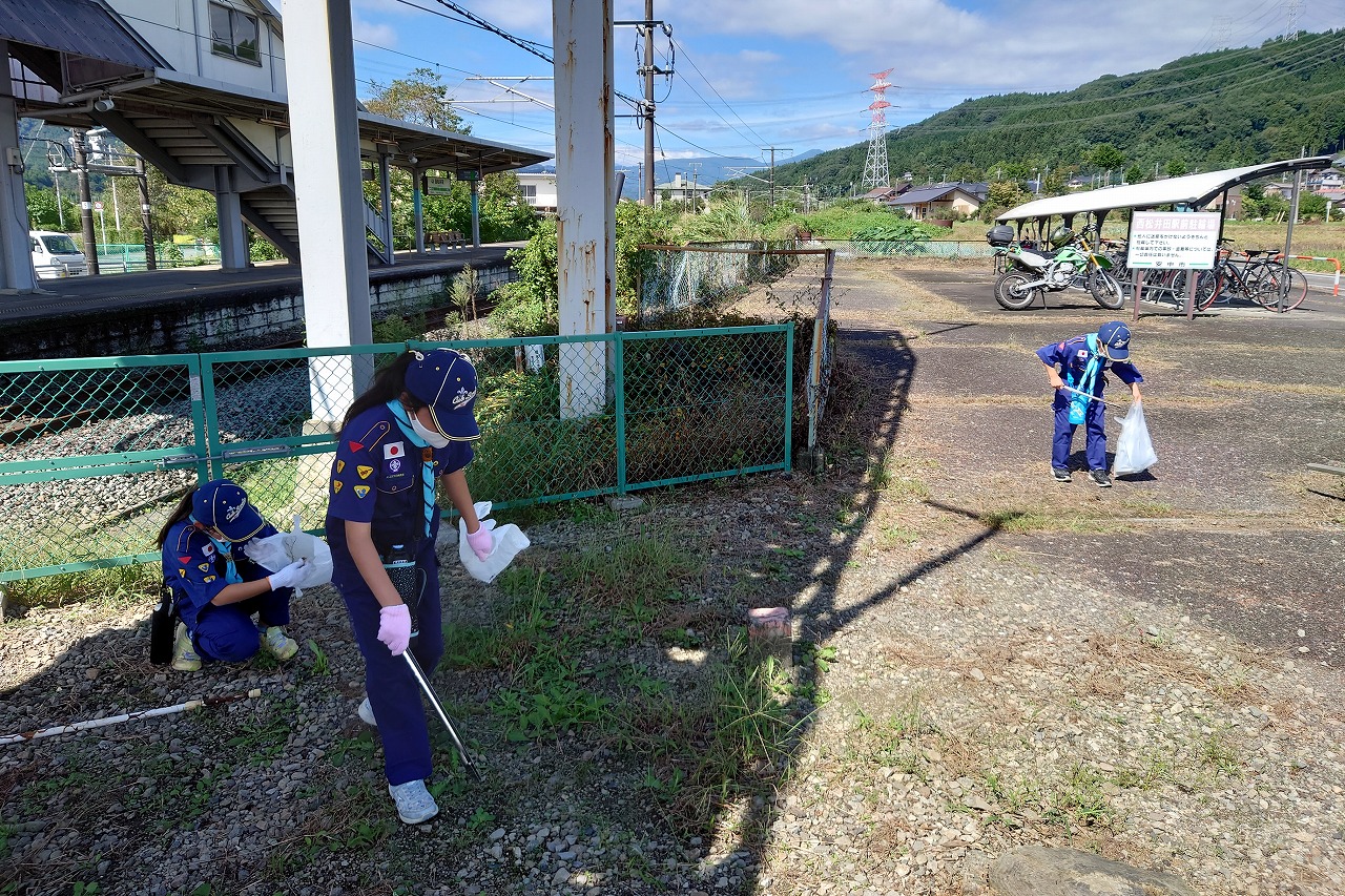 ボーイ隊はJR松井田駅、ビーバー隊とカブ隊はJR西松井田駅周辺のゴミ拾いを行いました。