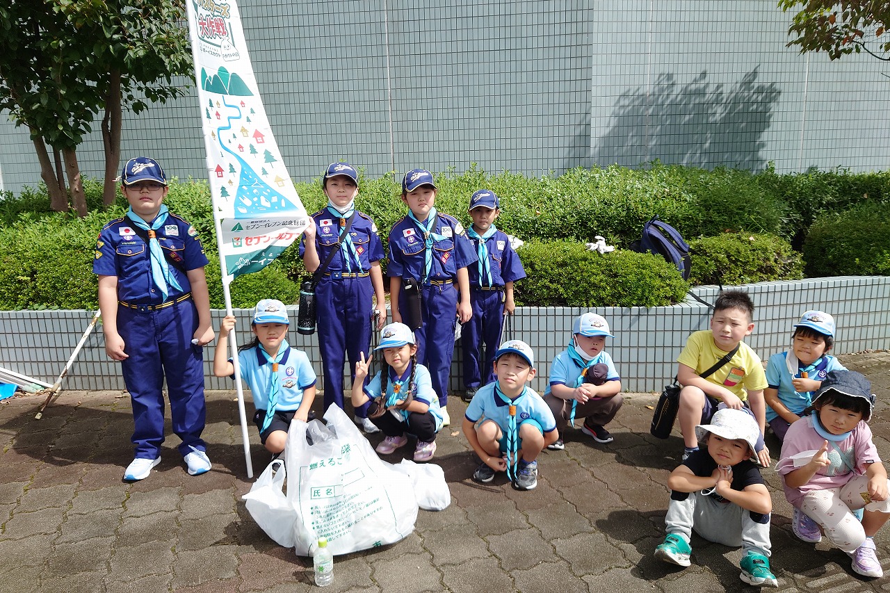 入団式後は、9月恒例「スカウトの日」のゴミ拾い奉仕活動を行いました。
