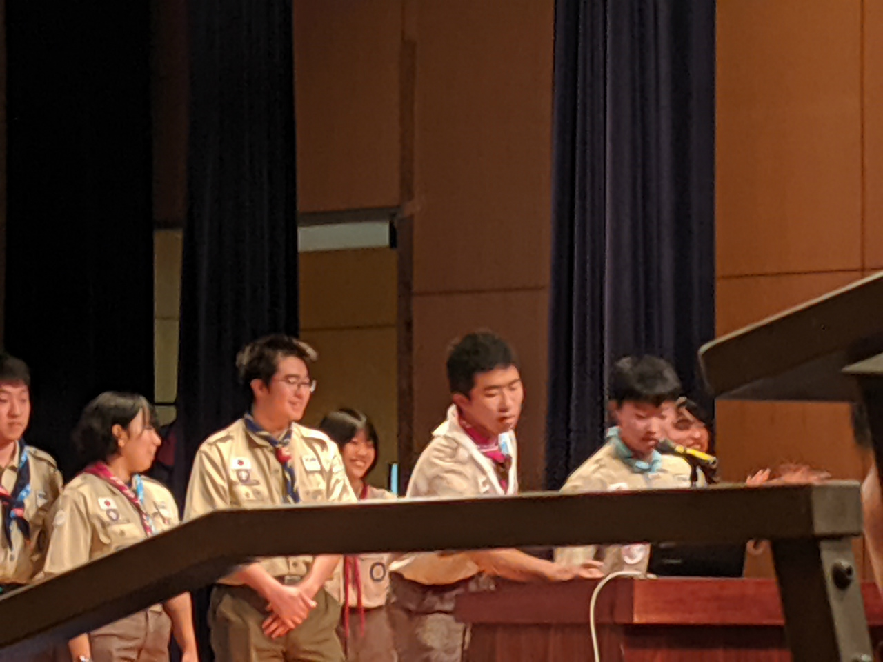 世界スカウトジャンボリーに参加したスカウトの発表を聞いたりしました。