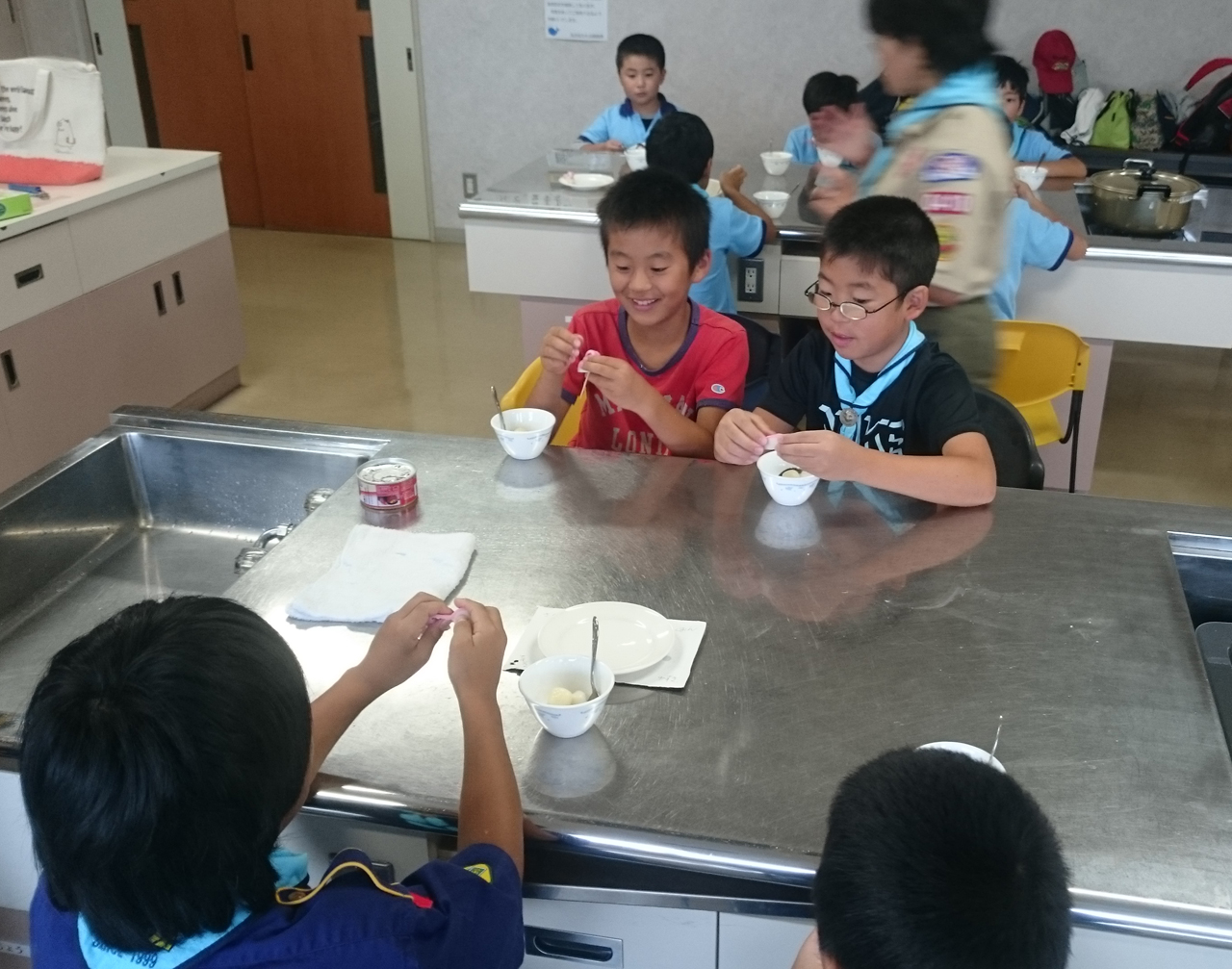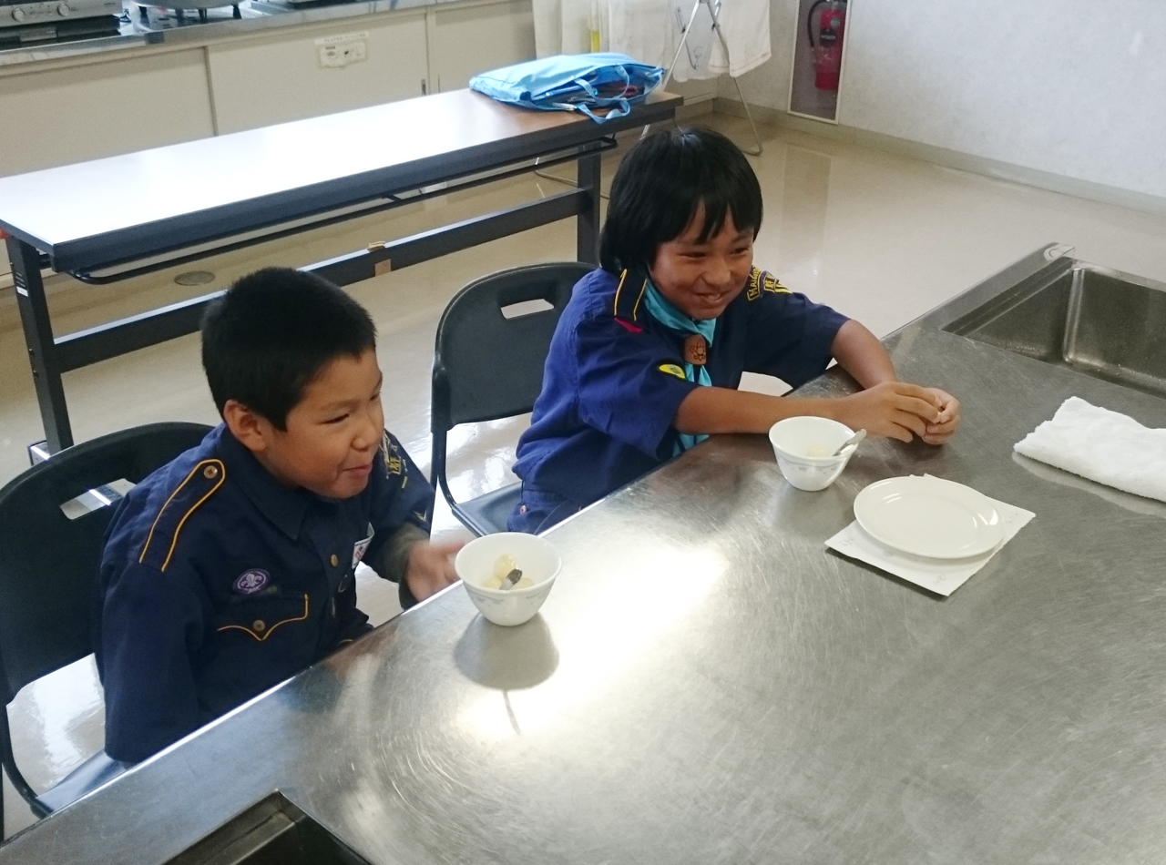 あいにくの天気だったので外では活動できませんでしたが、おいしく楽しい集会ができました。
