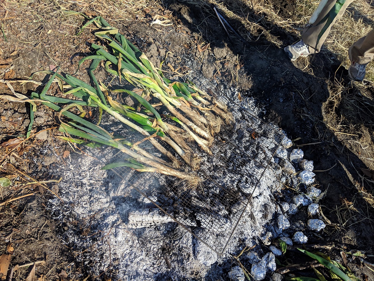 もちを食べたら畑へ移動し、下仁田ネギ焼きを食べました。