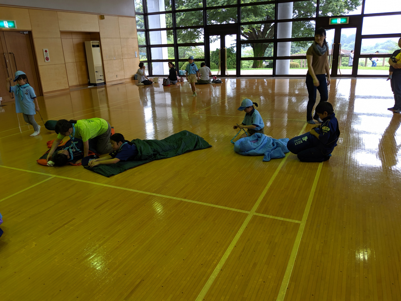 ビーバー隊とカブ隊は寝袋の使い方を練習しました。