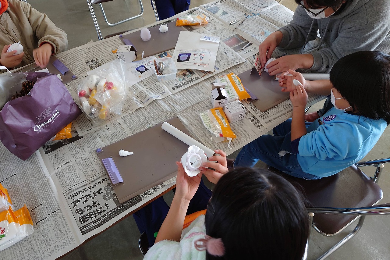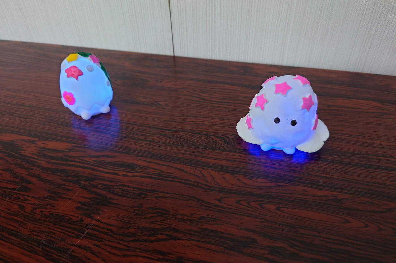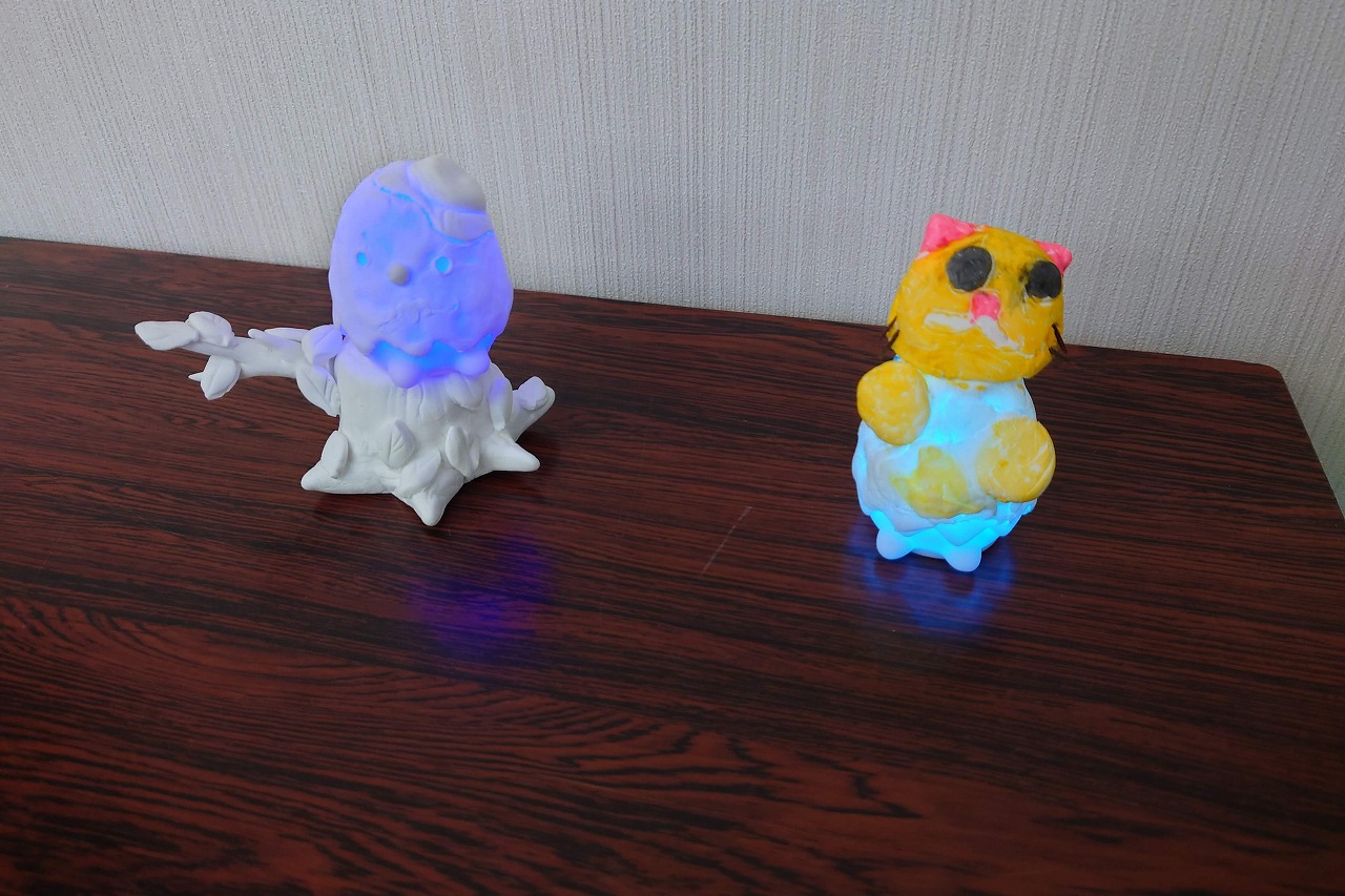 紙粘土の中にLEDランプを組み込んで、光るクリスマス飾りを作りました。