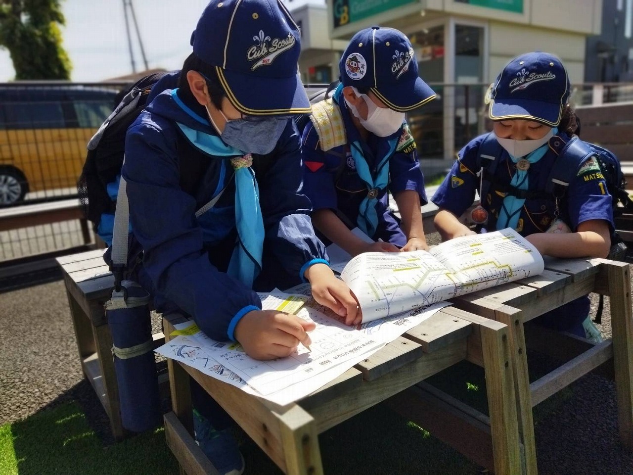 それぞれの自宅へ戻る電車やバスの路線を調べることは宿題にし、他の項目も含めクリアできたスカウトにはチャレンジ章「案内」を進呈しました。