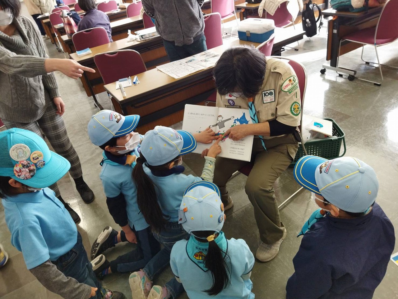 ビーバー隊は、地図絵本を使って「日本はどこかな?」「群馬県はどこかな?」と探し当てるゲームをしました。