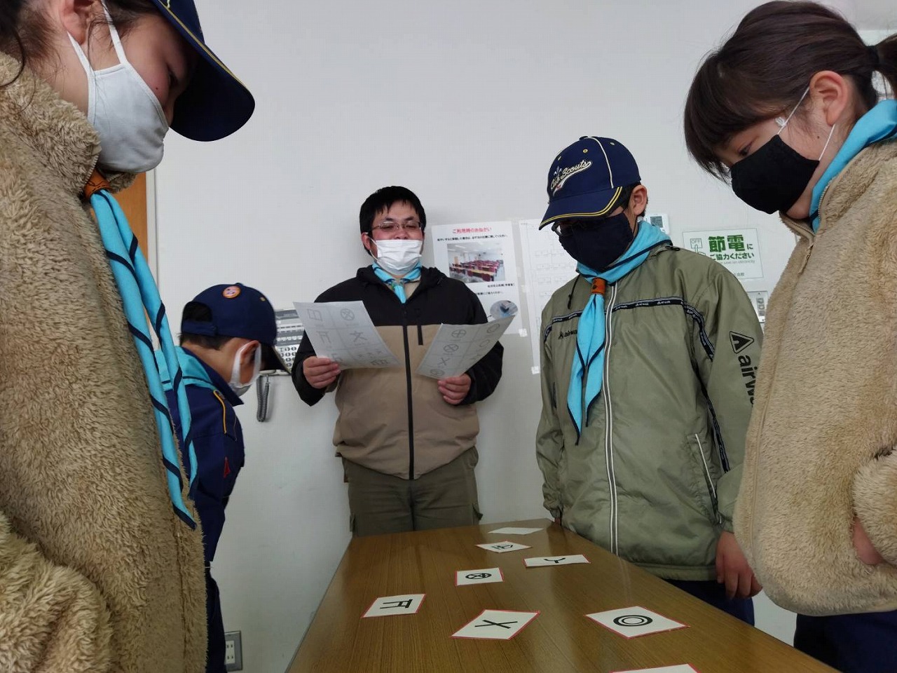 カブ隊は、BP祭で行われる「まち探検」の予習で、地図記号かるたをしました。
