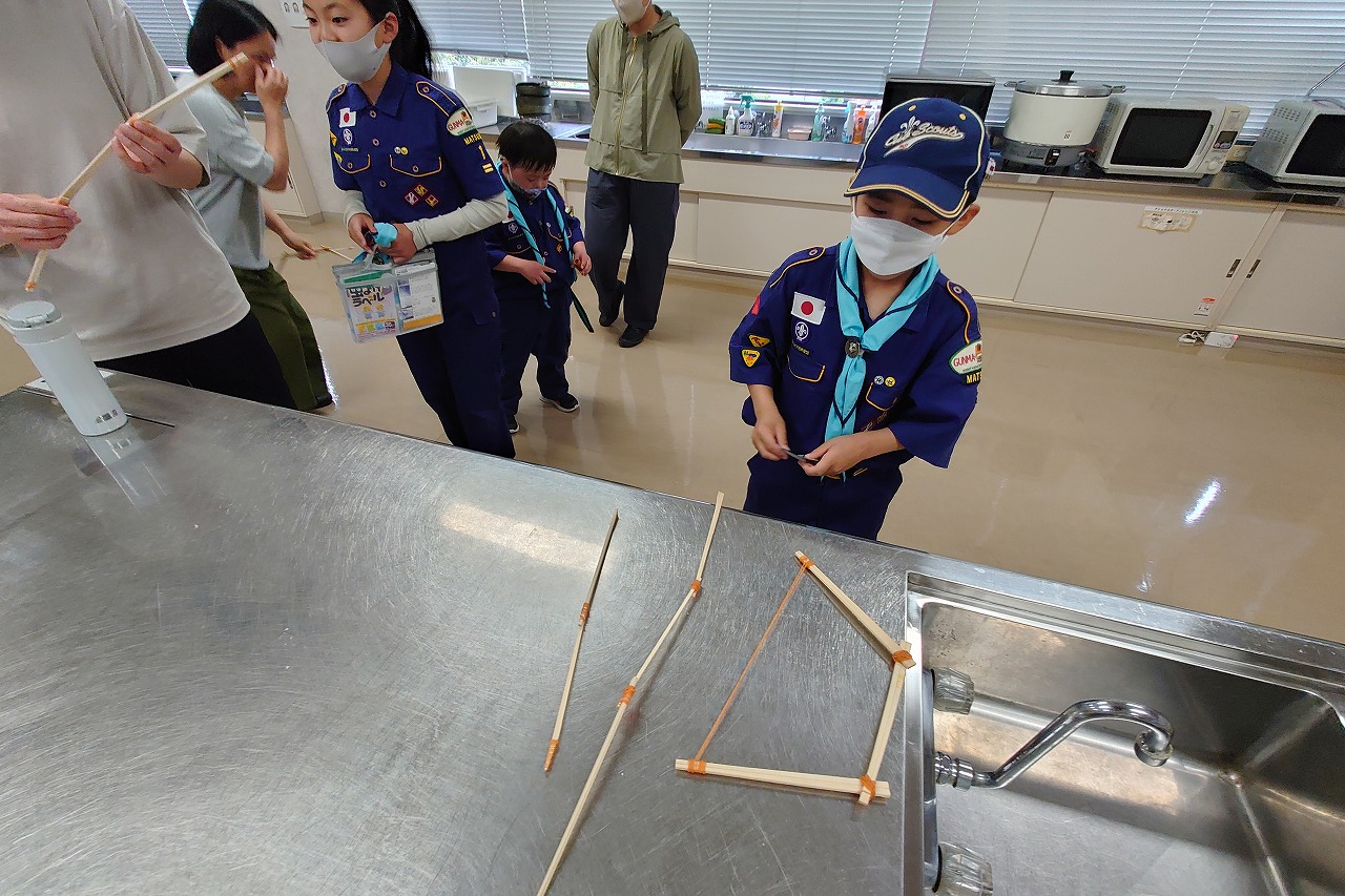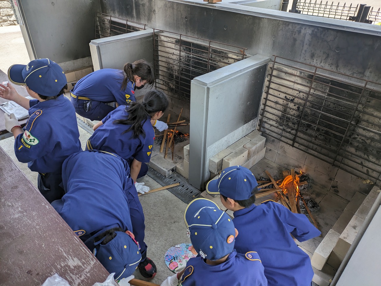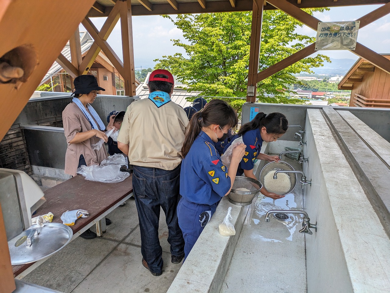 ロープの勉強をした後は今回も夏の団キャンプに向けて、飯ごうでの炊飯の練習をしました。