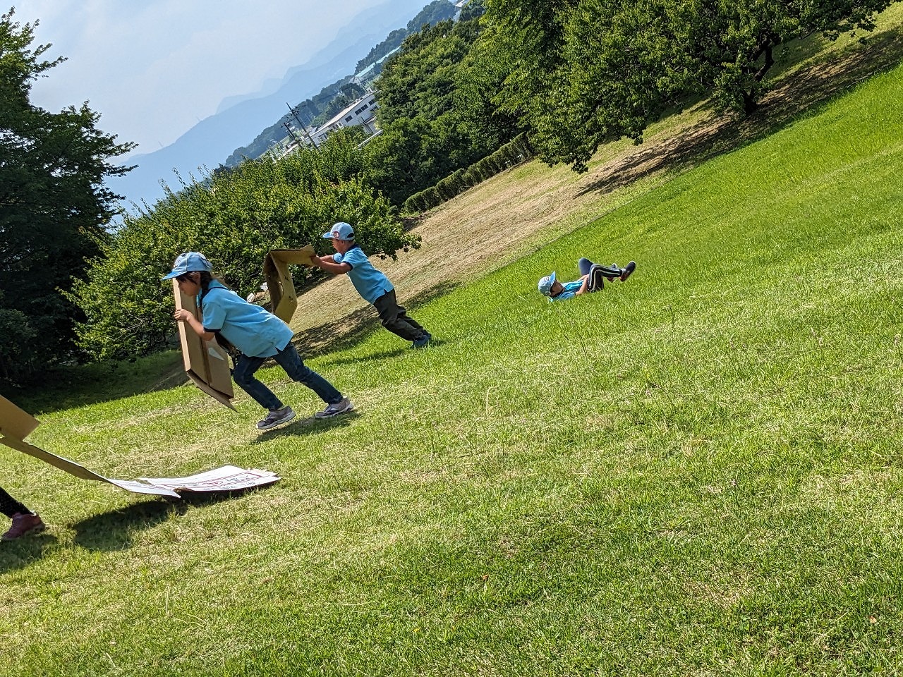 学習の森に戻ってきたら芝生すべりで遊びました。