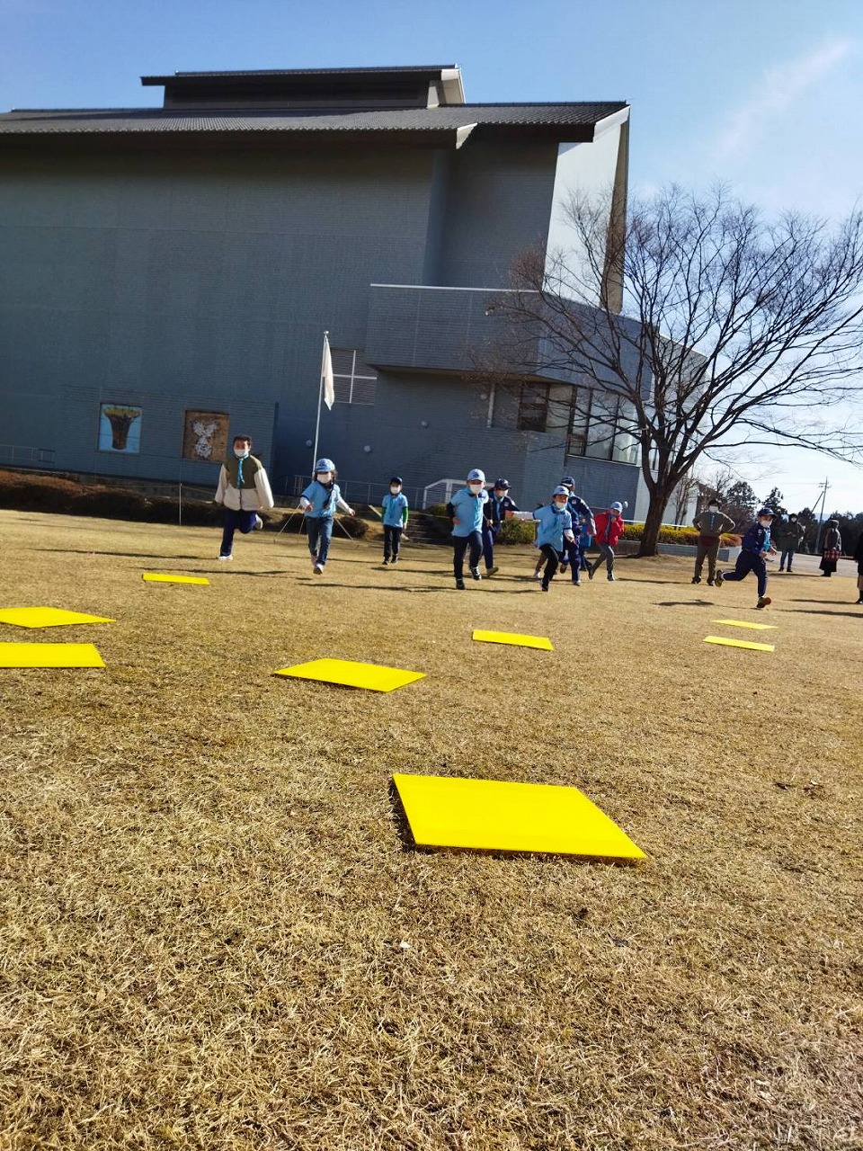影絵発表会が終わった後は、寒いですが外へ出て「ウグイス隊長」の巨大神経衰弱ゲームで遊びました。