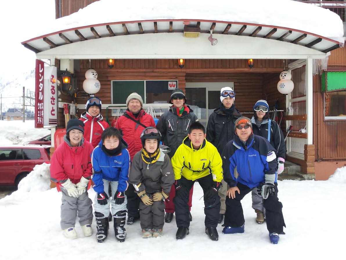 旅館食堂ふるさとまで歩き、荷物をおいて着替えてスキーを借りてゲレンデへ。