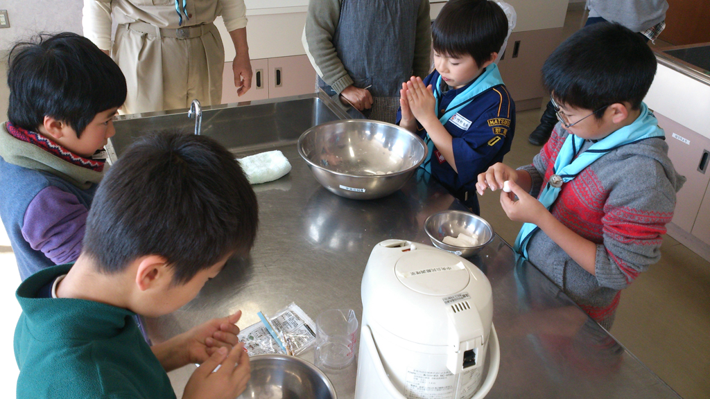 自動改札の通り方がわからず、おっかなびっくりなスカウトもいました。