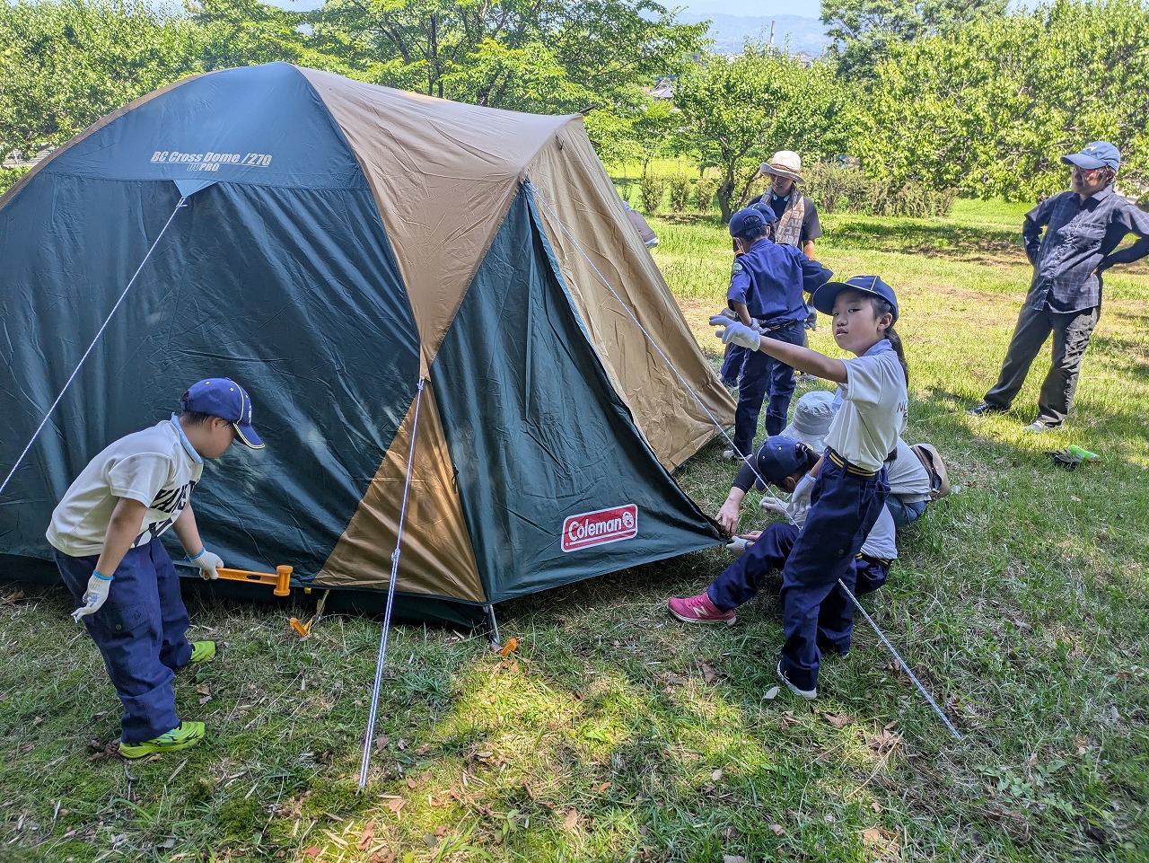 テント立ては前々回にひきつづき、備品の点検を兼ねています。