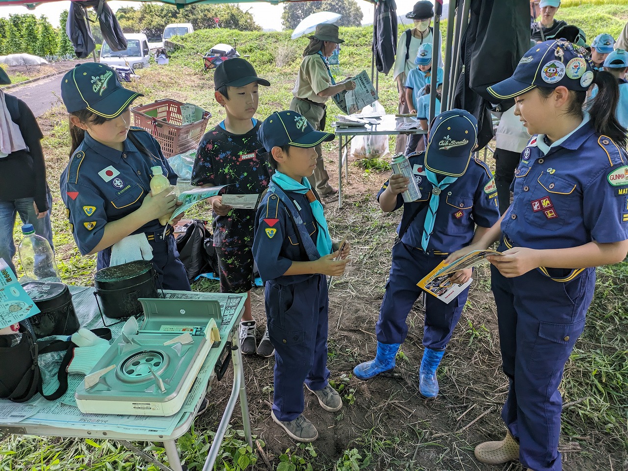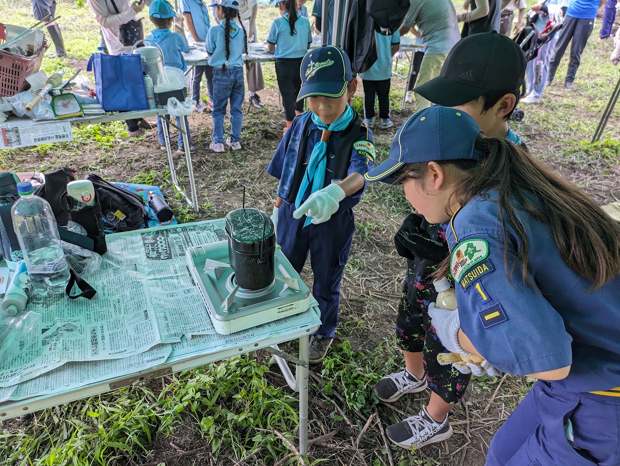カブ隊は、デイキャンプでペットボトルパンを発酵させている間、新チャレンジ章の「LPガスの達人」に挑戦しました。